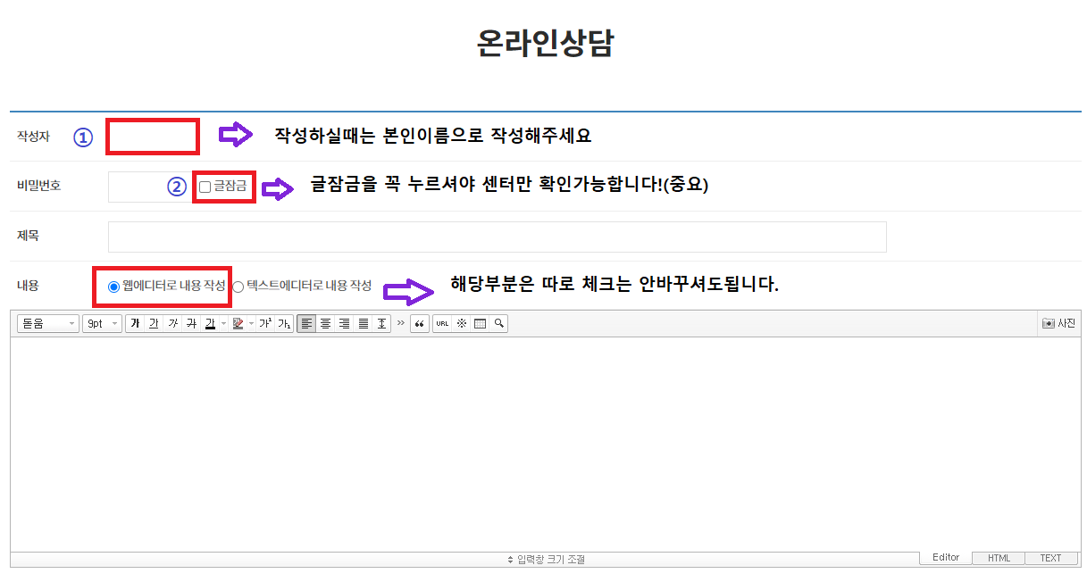 온라인상담 문의를 하실 때 아래의 그림과 같이 진행해 주시면 감사드리겠습니다 ^^