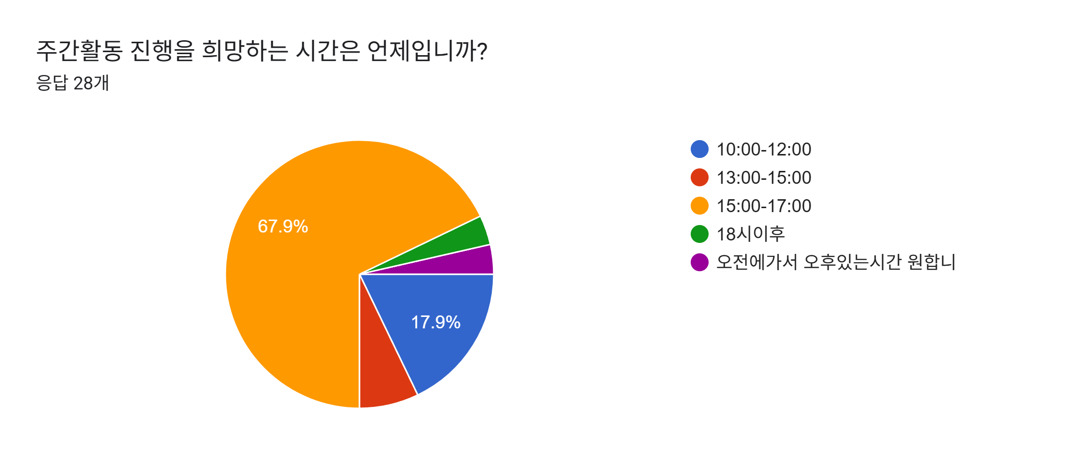 활동 시간은 15시-17시(67.9%)를 가장 많이 희망하였으며,